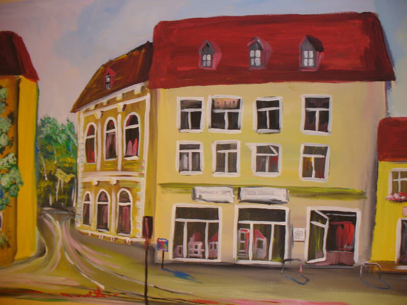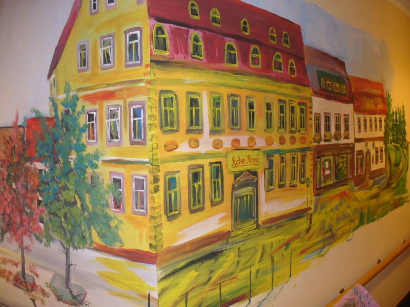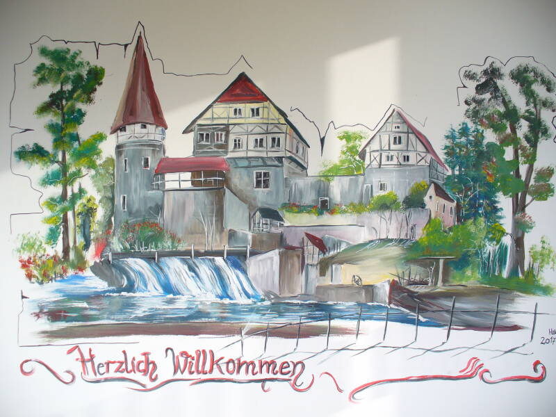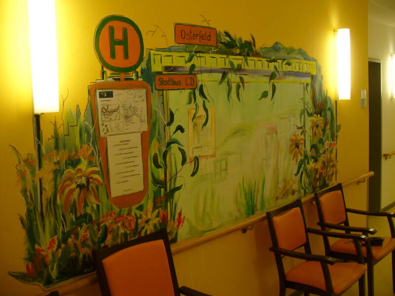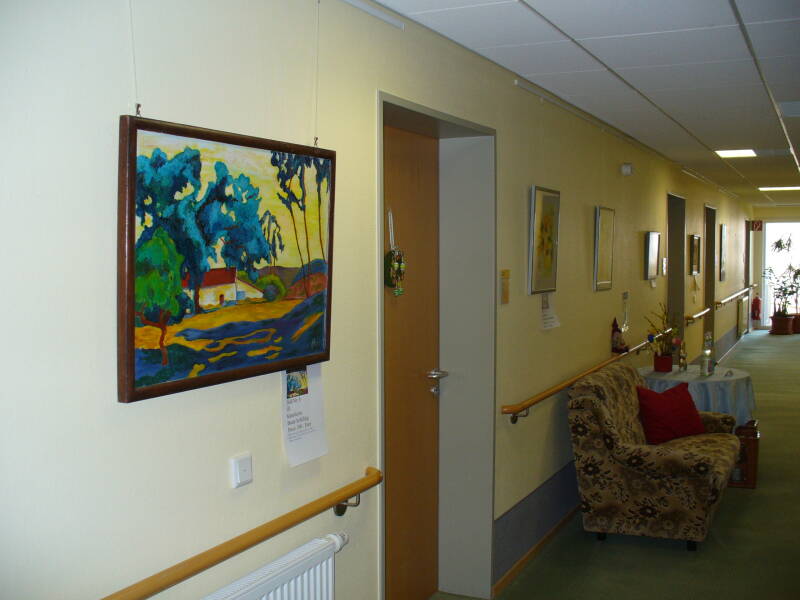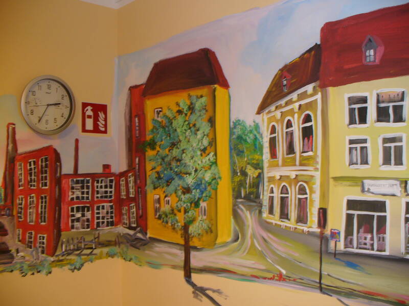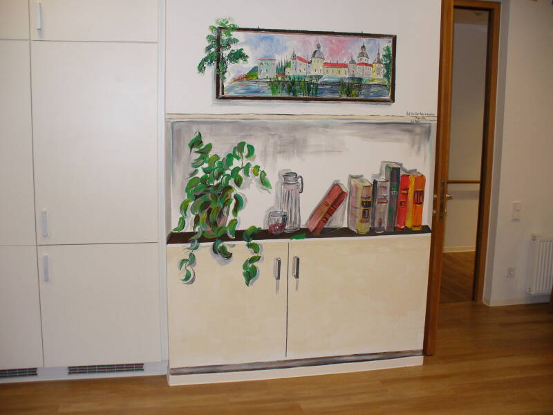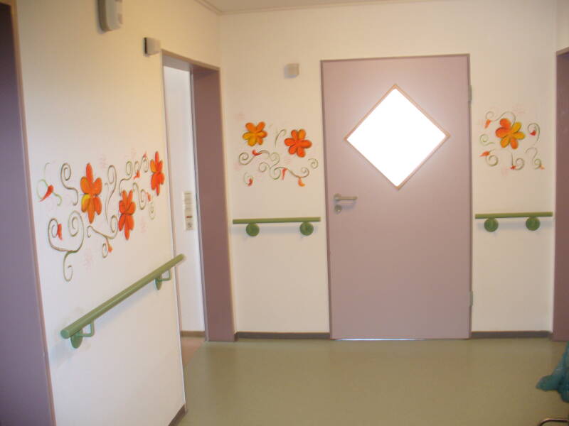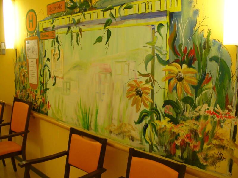 Wandbilder in verschiedenen Größen, in ganz Deutschland für die verschiedensten Auftraggeber. Bisherige Bilanz, ca. 80 Senioreneinrichtungen, Krankenhäuser und soziale Einrichtungen. Ca. 20 Unternehmen. In Größen von 50 cm x 50 cm bis 40 Meter bemalte Fläche. Jedes Motiv ist möglich.